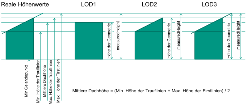- die measuredHeight ist unabhängig vom LOD des Gebäudes;