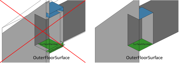 - Eine Wandfläche muss aus mehreren Flächen (SurfaceMember) bestehen wenn: